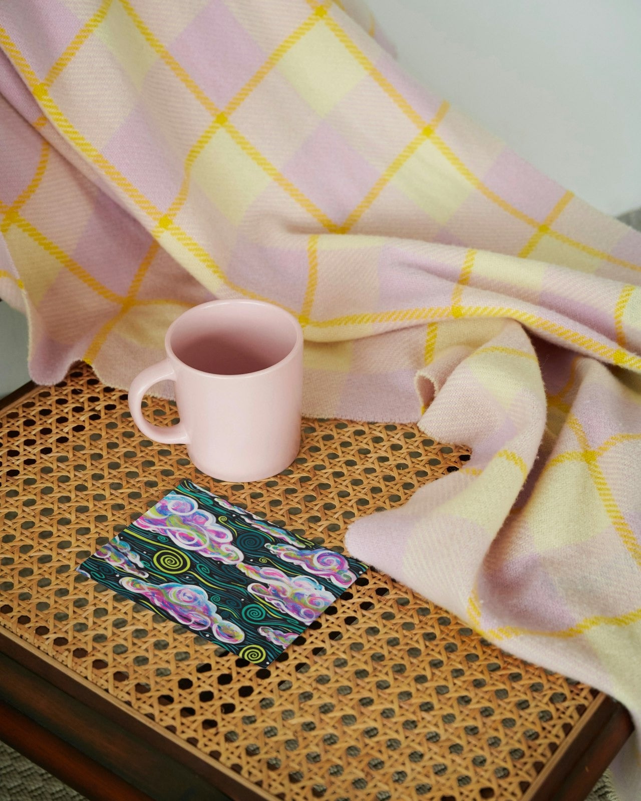 A beautiful giclée art print of an original acrylic painting titled, “Breeze" (2019). Whimsical swirling wind dance among the colorful clouds. Divine feminine consciousness is channeled into this spiritual awakening art and printed with the highest quality material and process to retain it's beauty for years to come. Perfect hippy home decor for a conscious enlightened space and everyday nature lover.