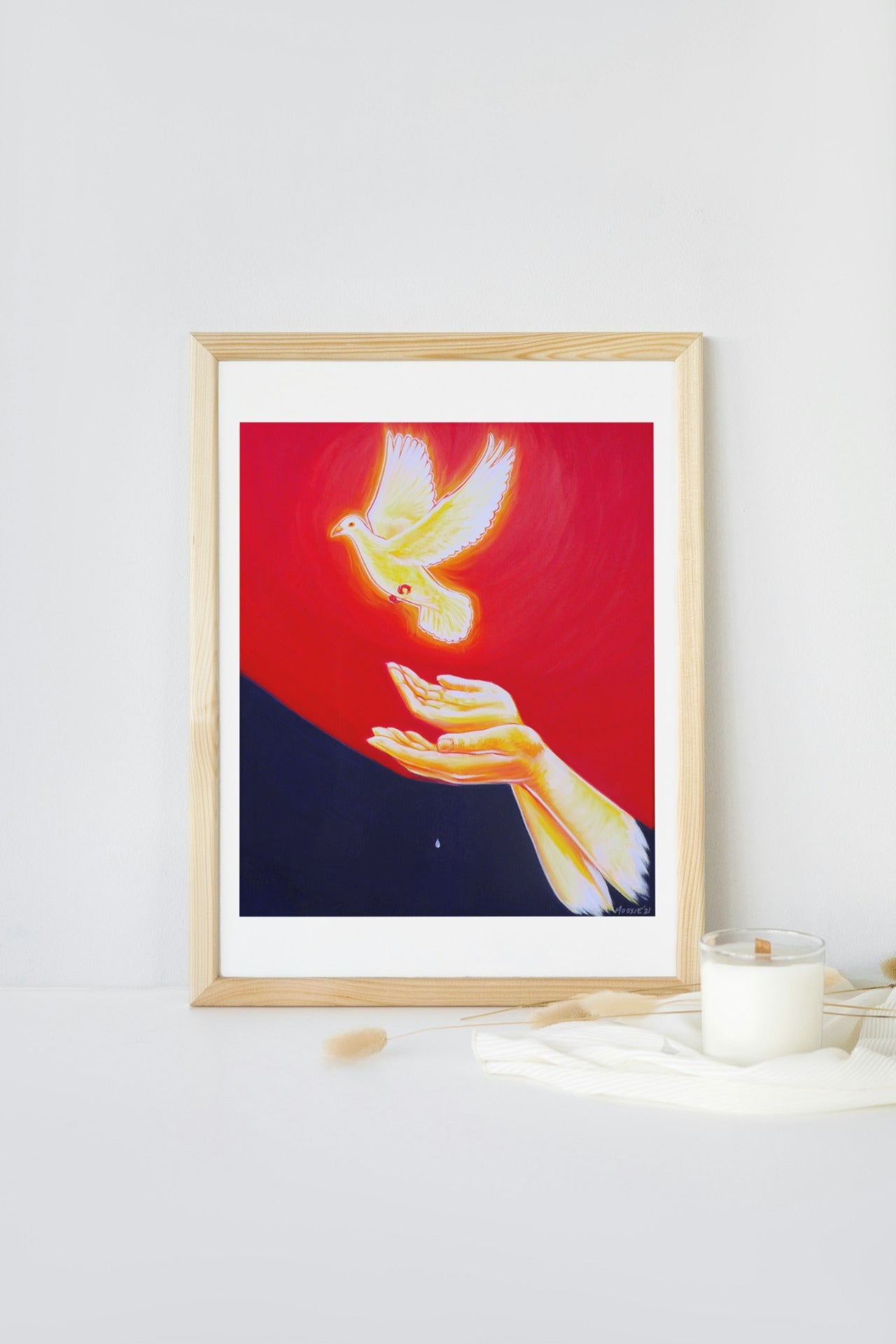 A beautiful giclée art print of an original acrylic painting titled, "Hope Ascends" (2021). Two hands release a dove, ascending beyond trauma. Divine feminine consciousness is channeled into this spiritual awakening art and printed with the highest quality material and process to retain it's beauty for years to come. Perfect hippy home decor for a conscious enlightened space.