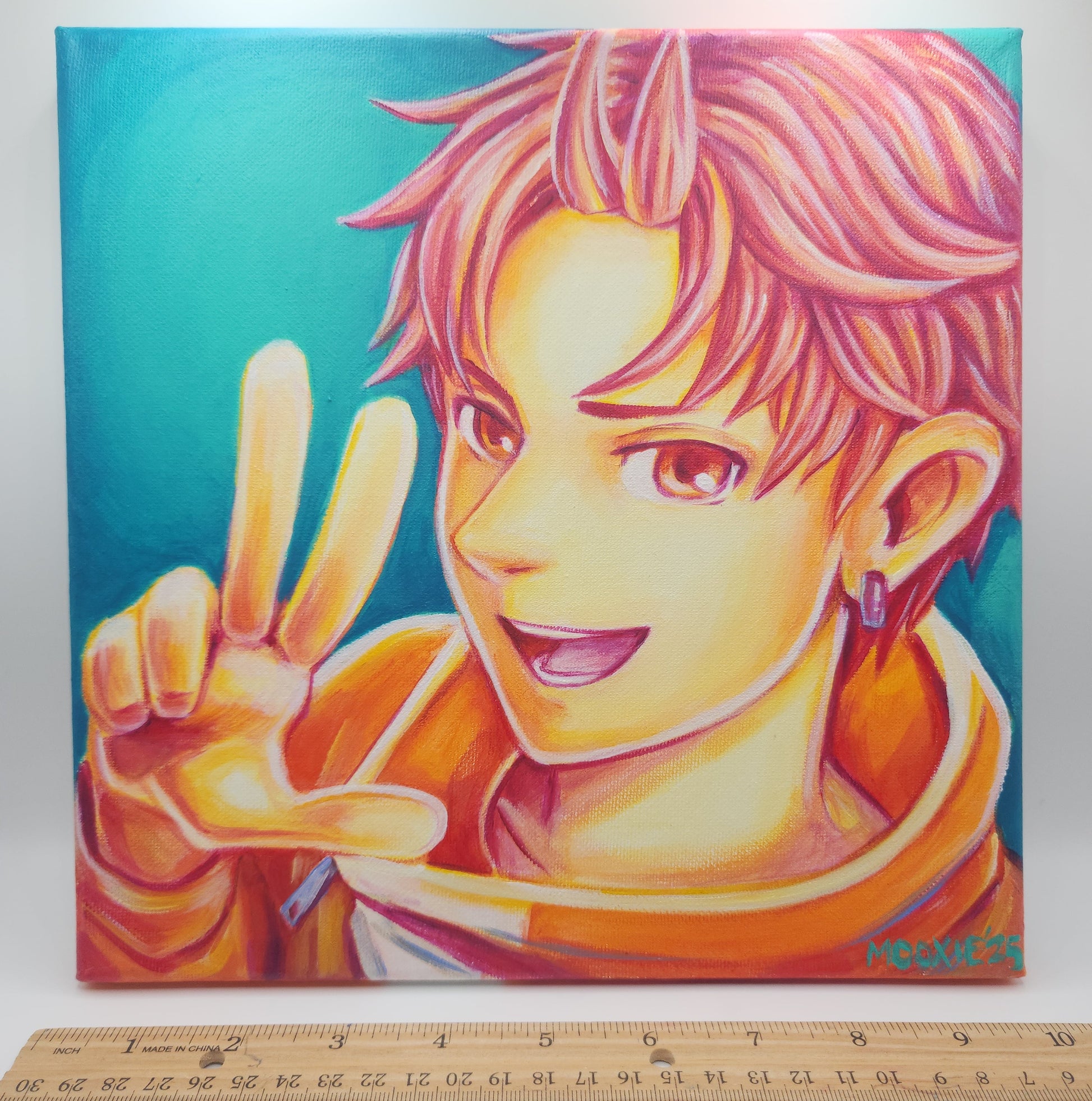 Original handmade acrylic painting "Jiji's Joy" (2025). Fanart creation of the character Jiji / Jin Enjoji from the anime series DanDaDan.